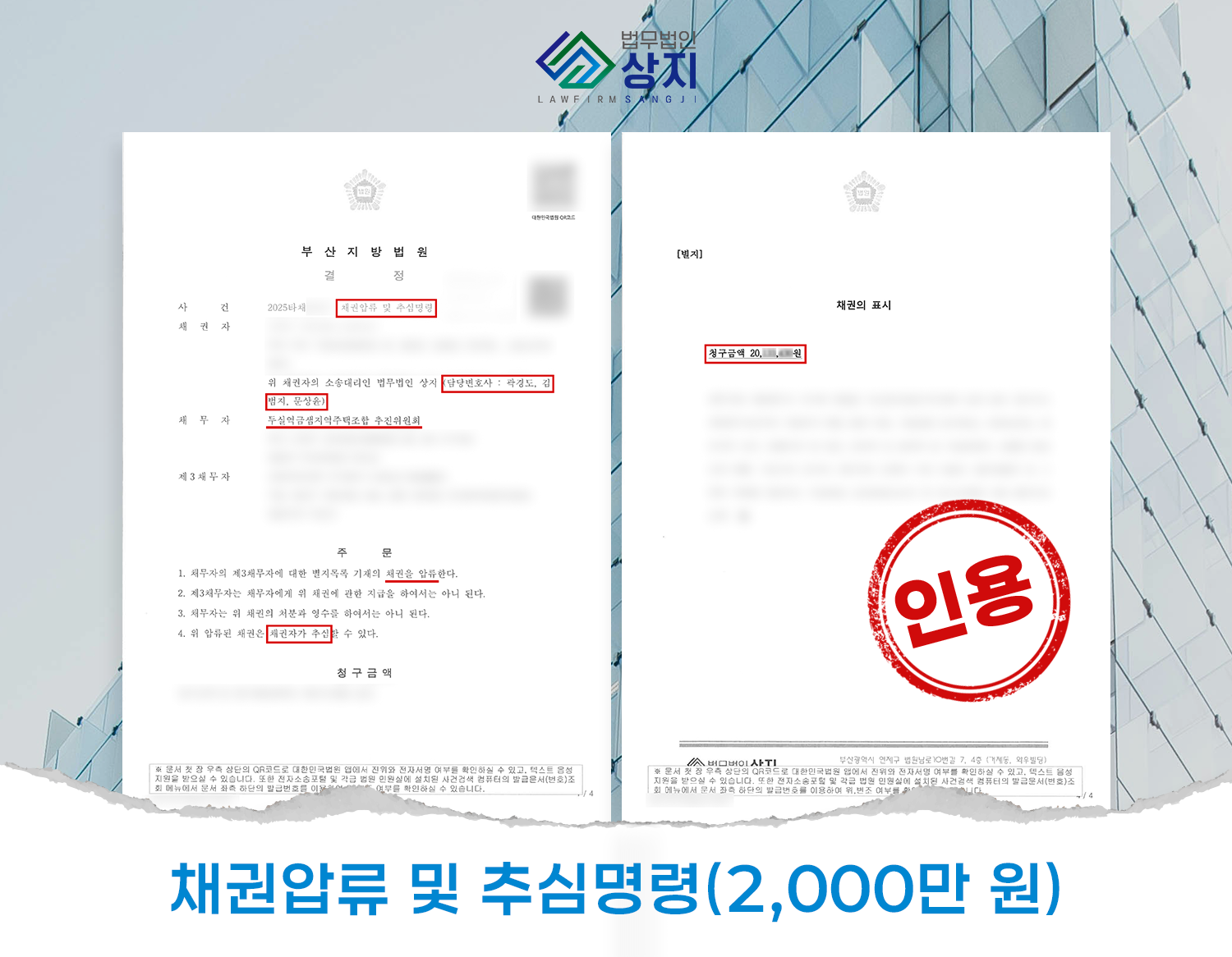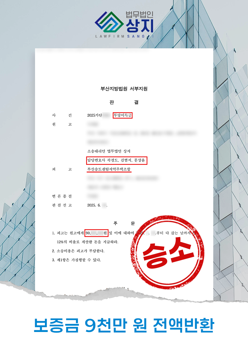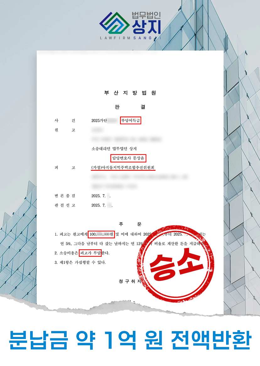 About 부산변호사 재개발/재건축/지역주택조합 부산 사직동지역주택조합 탈퇴 2025년 7월 사례 (분담금 1억 원 전액 환급)사직동 144-1번지 일대 아파트 신축·분양을 목적으로 한 (가칭) 조합에 가입한 의뢰인께서, 총 납부액 약 1억 원(업무대행비 포함)의 반환을 받을 수 있도록 법률 지원을 요청하셨습니다. 부산 송도센텀지역주택조합 탈퇴 2025년 6월 사례 (분담금 9천만 원 전액 환급)다양한 사정으로 탈퇴가 필요한 A씨는 상지에 상담을 접수해 구체적 절차를 안내받았습니다. 조합에 납부된 금액은 총 90,000,000원이었습니다. 상담을 통해 기납부금의 전액 환불을 목표로 진행하기로 했습니다. 두실역금샘 지역주택조합 환불 지연 대응 (강제집행: 채권압류/추심)의뢰인은 화해권고결정에 따라 환불을 받기로 했으나, 합의 기한을 넘겨 미지급되어 채권압류 및 추심명령을 통해 집행했습니다. 부산변호사 재개발/재건축/지역주택조합 Get In Touch